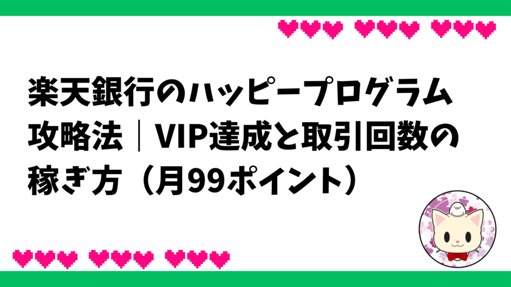 楽天銀行のハッピープログラム攻略法|VIP達成と取引回数の稼ぎ方(月99ポイント)