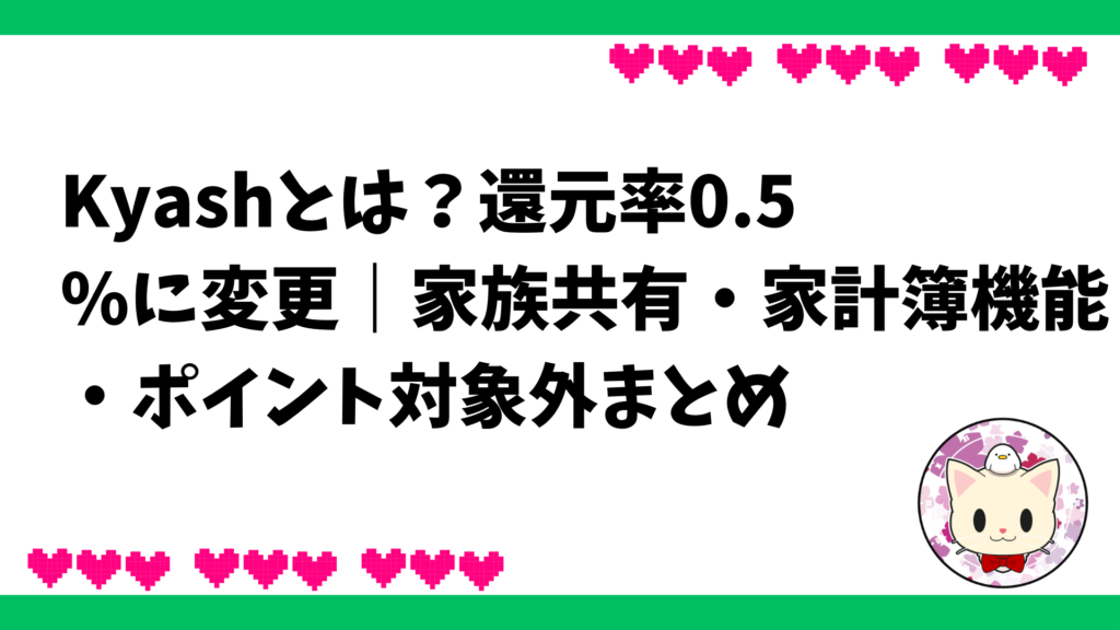 Kyashとは?還元率0.5%に変更|家族共有・家計簿機能・ポイント対象外まとめ