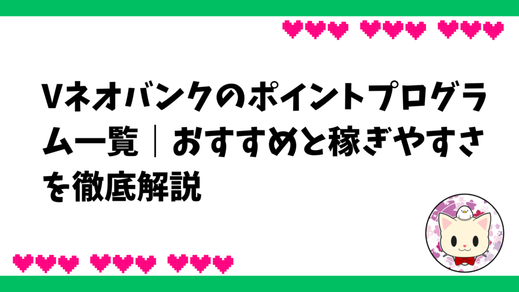 Vネオバンクのポイントプログラム一覧|おすすめと稼ぎやすさを徹底解説