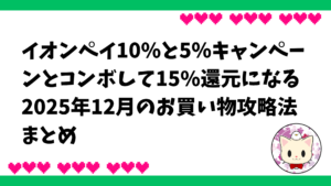 イオンペイのお買い物で10%+5%で15%還元となる2025年12月のキャンペーンコンボについて解説しました。