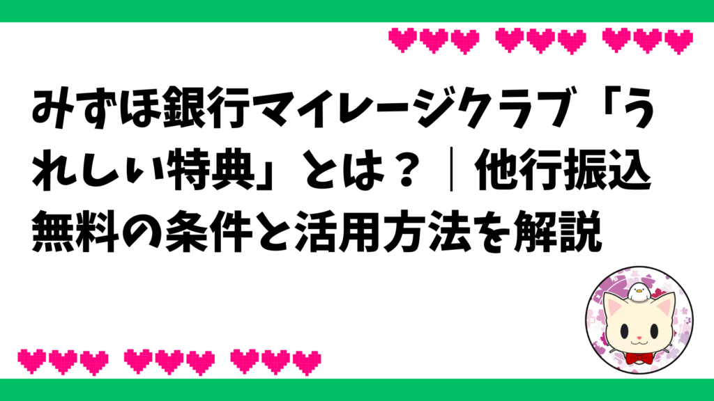 みずほ銀行マイレージクラブ「うれしい特典」とは?|他行振込無料の条件と活用方法を解説