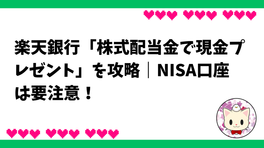楽天銀行「株式配当金で現金プレゼント」を攻略|NISA口座は要注意!