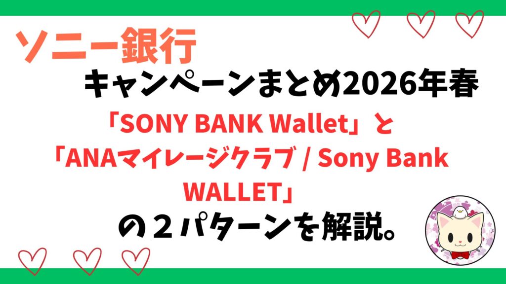 ソニー銀行のキャンペーンまとめ2026年春。「SONY BANK Wallet」と「ANAマイレージクラブ / Sony Bank WALLET」の2パターンを解説。
