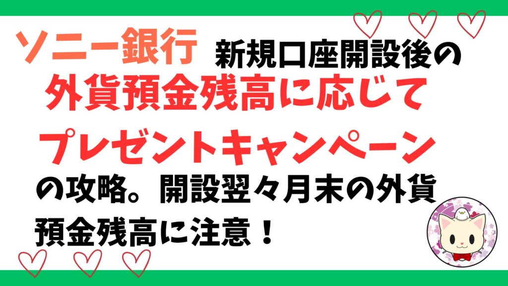 ソニー銀行の新規口座開設後の外貨預金残高に応じてプレゼントキャンペーンの攻略。開設翌々月末の外貨預金残高に注意!