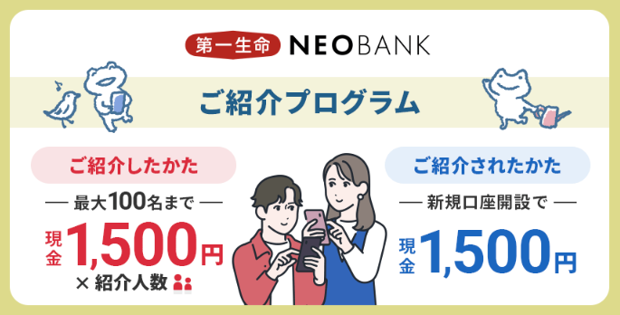 第一生命ネオバンクでは期間限定で紹介キャンペーンも開催されています。