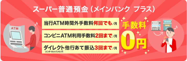 スーパー普通預金(メインバンク プラス)を契約していると、手数料優遇サービスが受けられます。