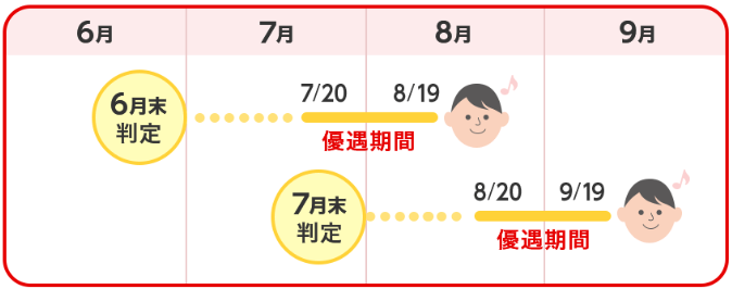 | 優遇期間 | 判定日の翌月20日から翌々月19日まで |
