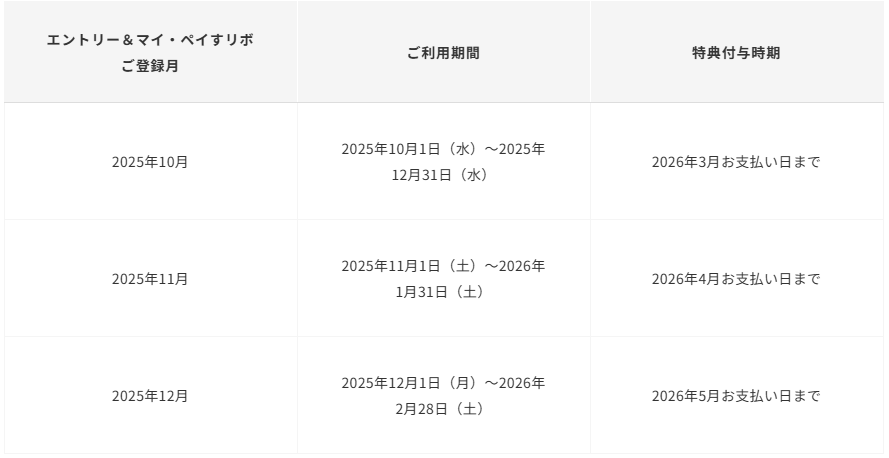 マイペイすリボ登録日 | 12/1-12/31 | |