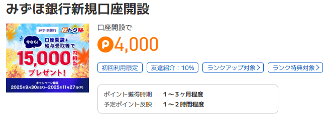みずほ銀行では、2025年秋に「秋トク祭」として、新規口座開設キャンペーンを開催。