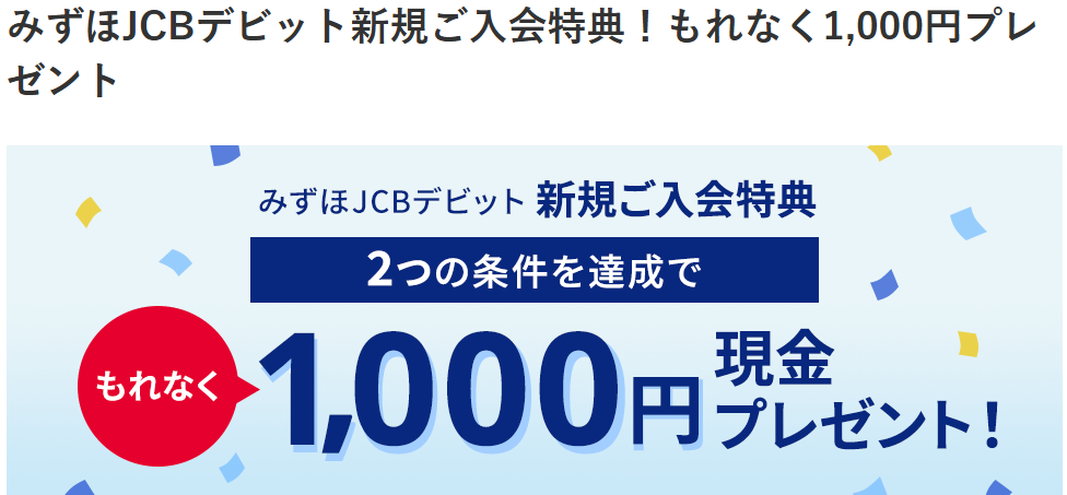 みずほJCBデビット新規ご⼊会特典!もれなく1,000円プレゼント | みずほ銀行