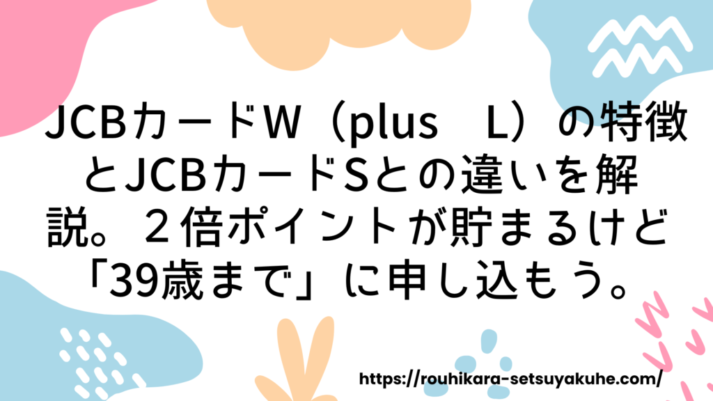 JCBカードW(plus L)の特徴とJCBカードSとの違いを解説。2倍ポイントが貯まるけど「39歳まで」に申し込もう。
