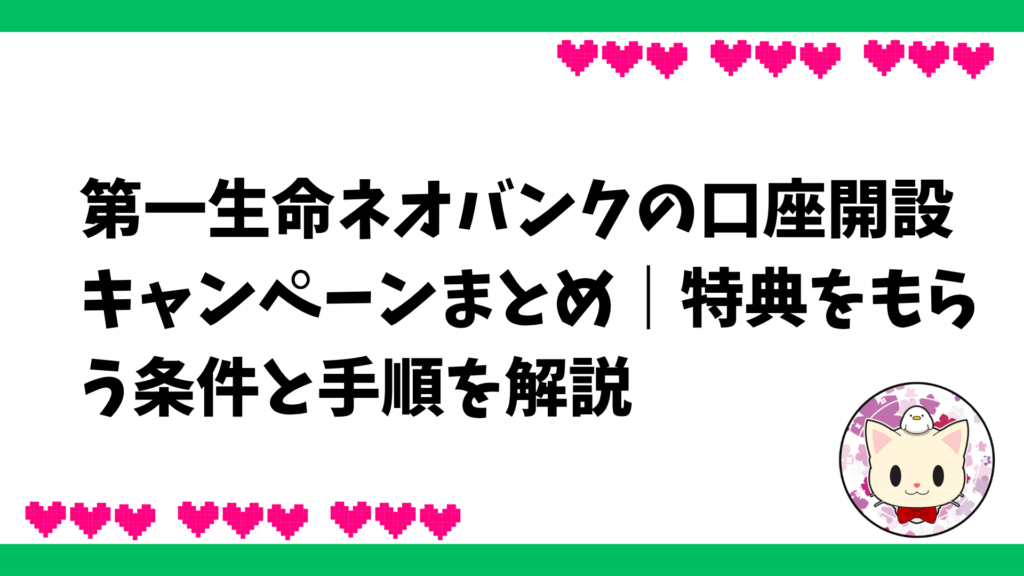 第一生命ネオバンクの口座開設キャンペーンまとめ|2,000円もらう条件と手順を解説