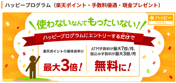 楽天銀行のハッピープログラムは楽天銀行の資産残高・月の取引回数に応じて特典が受けられるものです。