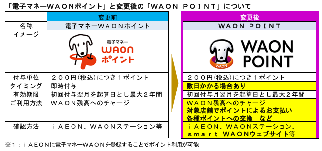 | (変更前)電子マネーWAONポイント | (変更後)WAON POINT |