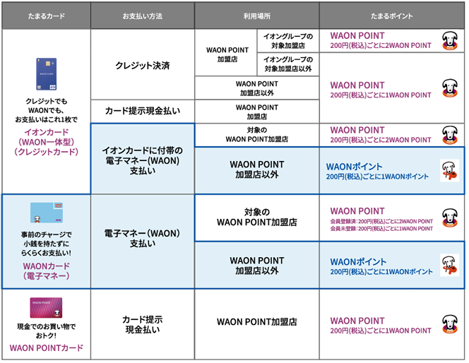 | WAON決済 (WAON POINT加盟店) | WAON POINT 200円につき2P |